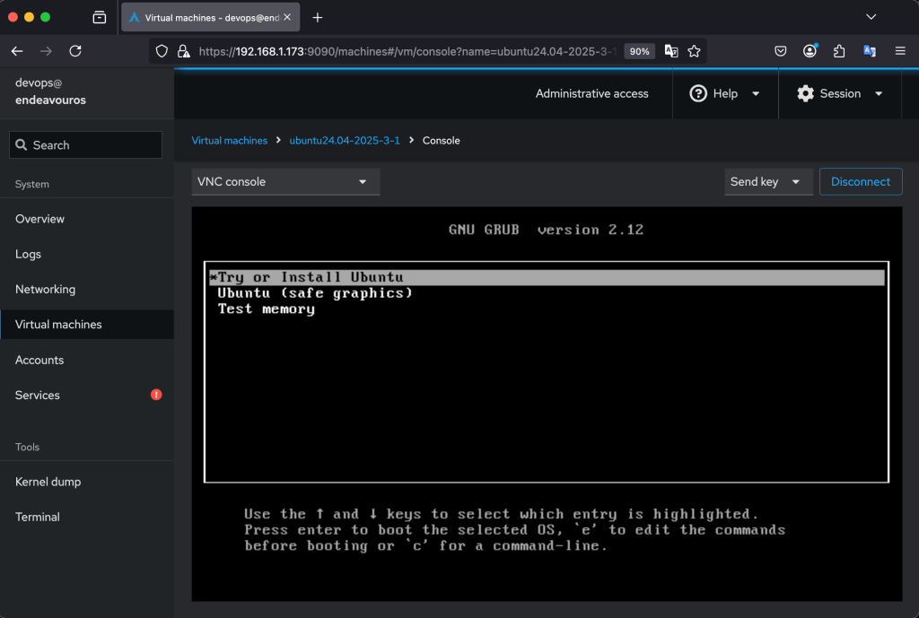 Cockpit provides direct access to the VM via a VNC console or SPICE. This console is accessible directly on the cockpit UI and you don’t need to install any extra packages: