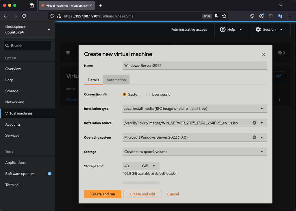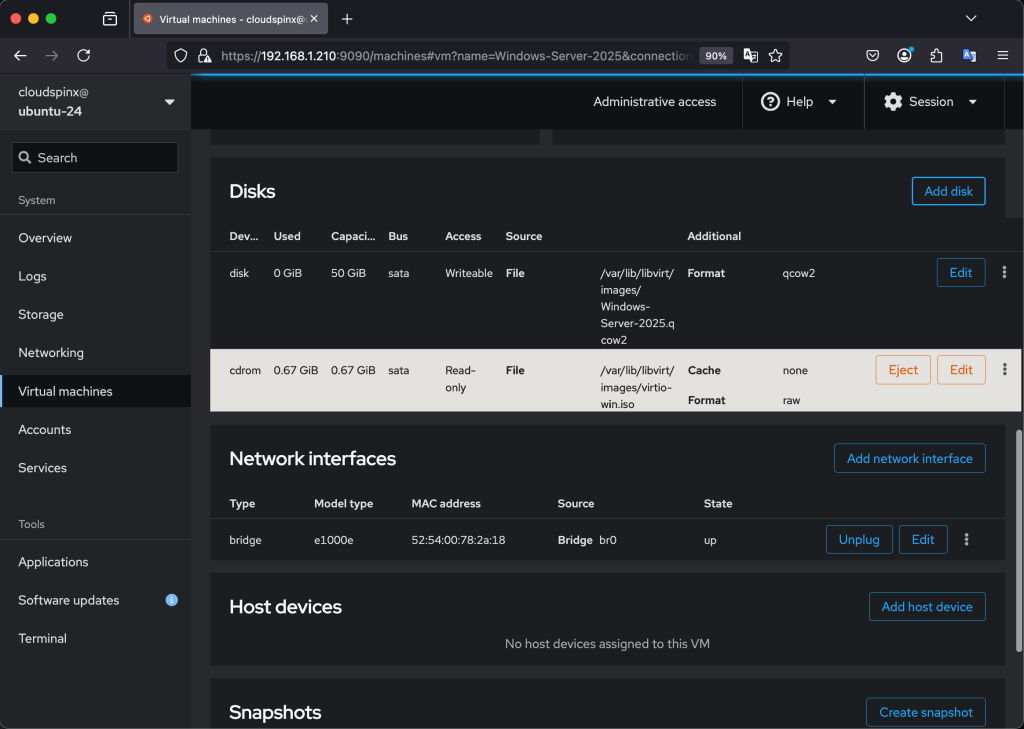 We just looked at provisioning a Linux VM on cockpit. How about a windows VM? Well, it’s pretty simple and almost identical to creating a Linux VM, except we need to add an extra CD-ROM for the VirtIO iso file.