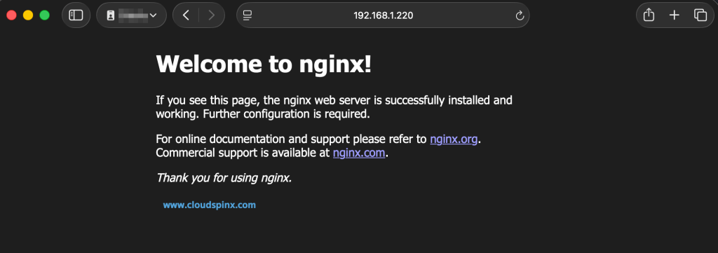 If you try accessing http://server_ip:8000 on your browser, you should get Welcome to nginx page.
