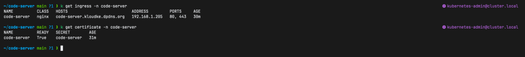 So, let’s go ahead and configure Code Server Ingress with Nginx. This is the Ingress that I used for the Code Server: