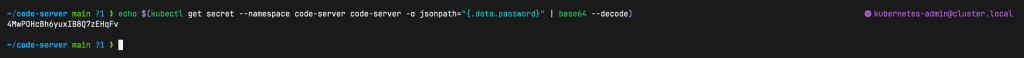 echo $(kubectl get secret --namespace code-server code-server -o jsonpath="{.data.password}" | base64 --decode)
