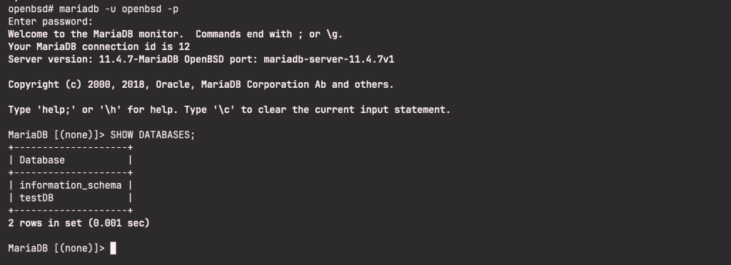 Step 4 – Test MariaDB installation on OpenBSD 7
