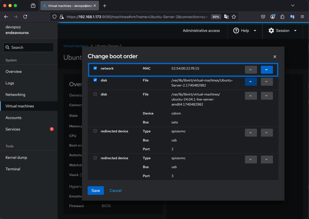 For instance, we can move network boot up the oder by selecting it and clicking on the up arrow: